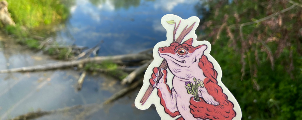 Want a little frogman flare for your computer, phone or water bottle? Now's your chance! These not-so-little guys are roughly 4" tall and 3" wide. This hardy sticker has been printed on durable, outdoor-grade 3.2 mil vinyl (with an additional matte laminate) and contour-cut with love through Brownlee Press.